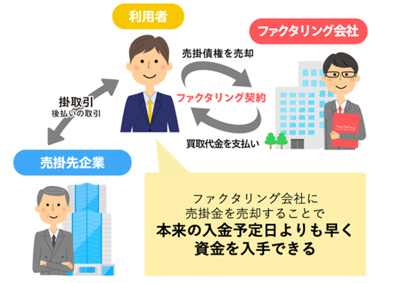 冒頭でも触れましたが、そもそもファクタリングとは、入金前の売掛債権(売掛金を受け取る権利)を売却して、本来の入金予定日よりも早く現金化(資金化)することです。