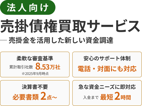最短2時間で売掛金を現金化・