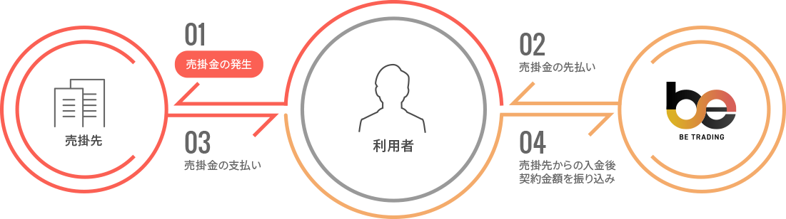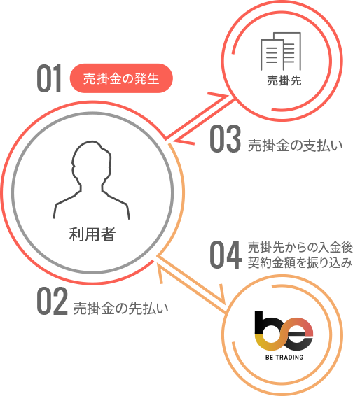 ファクタリングとは、お客様の所有する売掛債権(売掛金)をファクタリング会社へ売却し、売掛金の入金予定日よりも早く資金化することで、売掛金の早期回収や未回収リスク軽減を図るサービスです。